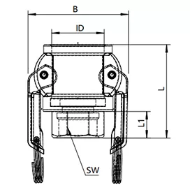 VEĽKOSŤ | DN | ČASŤ # | ID | L | L1 | B | SW | Hmotnosť (kg) | |||